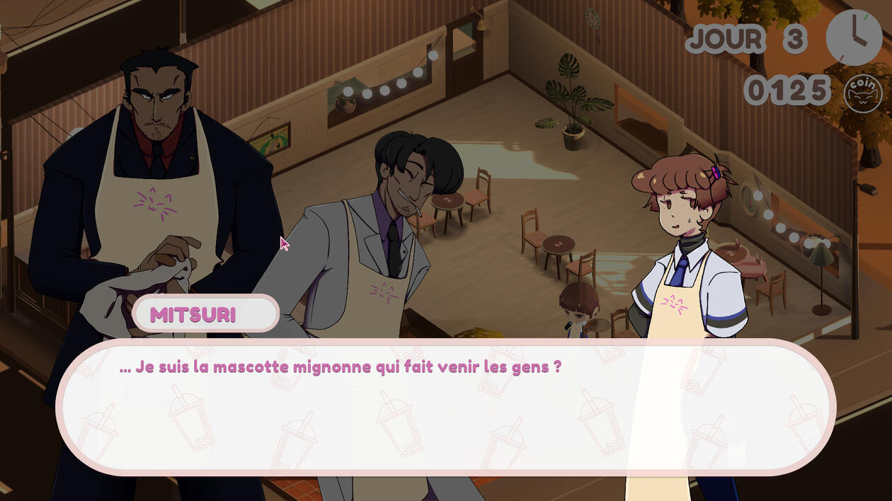 ScenarioWelcome To Bubble Tea is about Yakuzas running a bubble tea shop and their part-time employee, an high schooler who ended up there by mistake.Blender, Clip Studio Paint, Unity